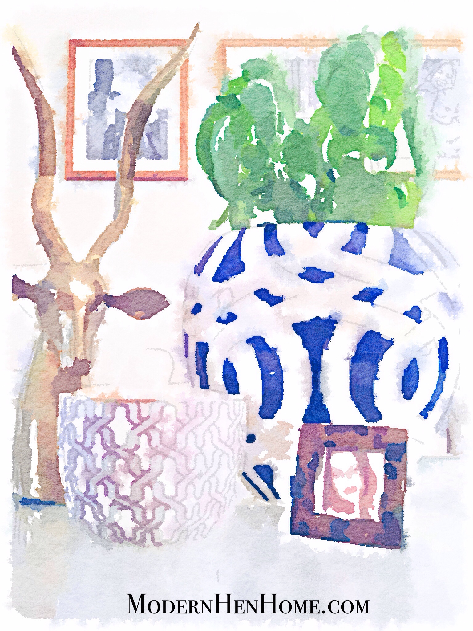 Create vignettes for big impact.  According to the dictionary: “A vignette is a brief, but powerful scene. A good vignette leaves you wanting more.” This is the perfect explanation for juxtaposing accessories in an interesting and off-beat way. Rotating frames, children’s art, and other collectibles in small doses instead of putting everything out at once lessens clutter and draws the eye to what you really want to showcase in your ensemble or vignette.