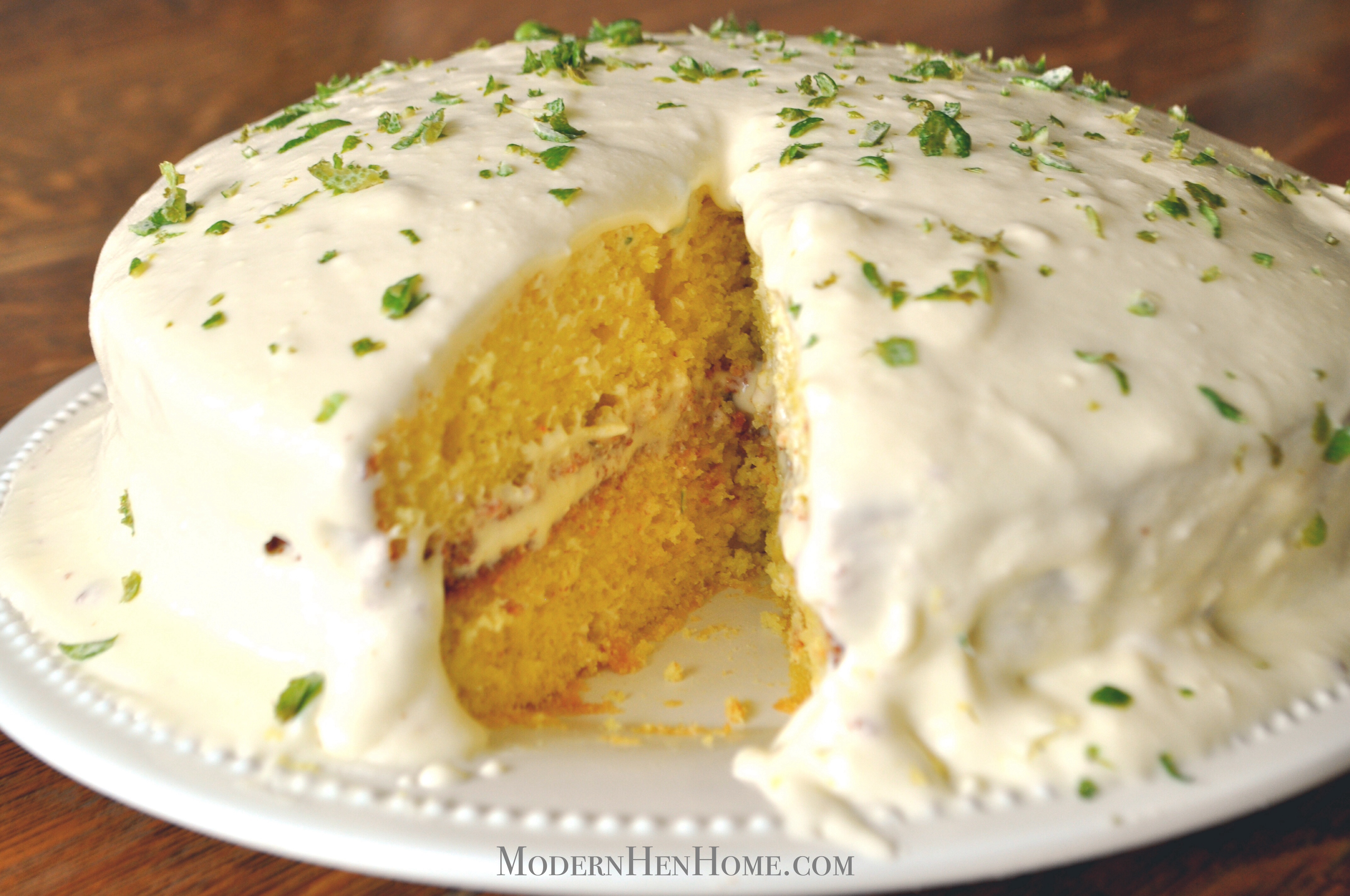This lemony-lime cake is mouthwatering with a delightful, creamy citrus frosting and a sprinkling of lime zest for the finishing touch.