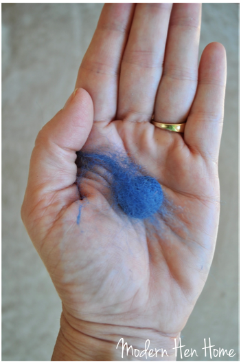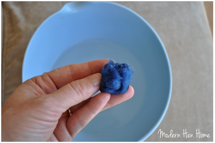 The wool will begin to tighten and form a ball. Add water if needed and keep rolling until ball is formed. This will take several minutes.