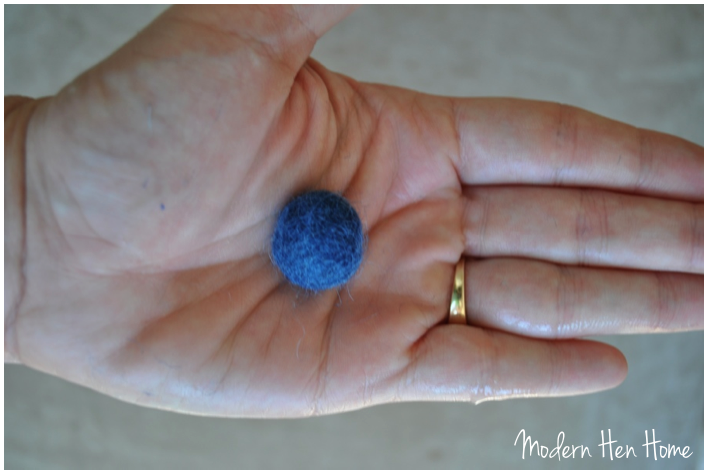 If like Little Red Riding Hood you gather acorn caps from the forest, they may contain tiny critters that wiggle. So if you’re brave enough to do that, be sure to scrub them well and spray with a sealant. Or, you can do what I did and buy a small package of faux acorns at the craft store and ask your prince son to twist the caps off. Hobby Lobby and Michael’s had wool roving, but the JoAnn’s in my area did not.